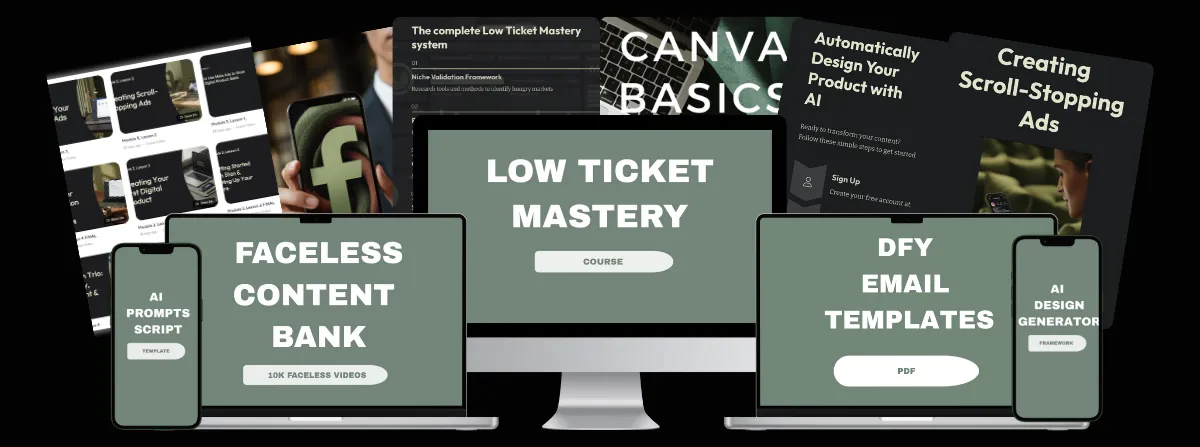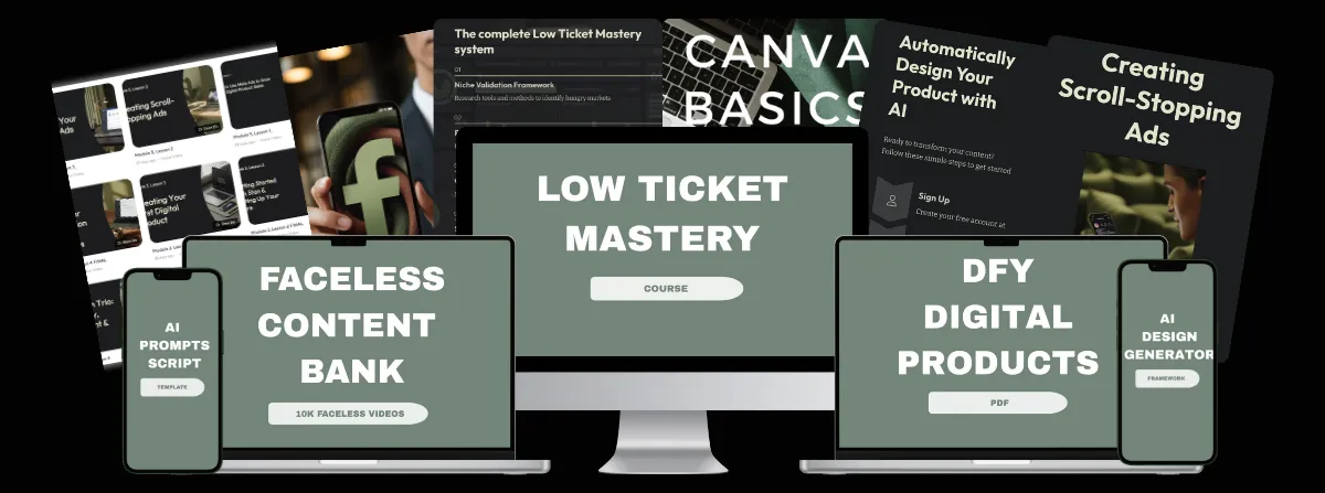 Low Ticket Mastery is your shortcut to selling smart, faceless digital products that actually convert — and it’s ready for you right now.