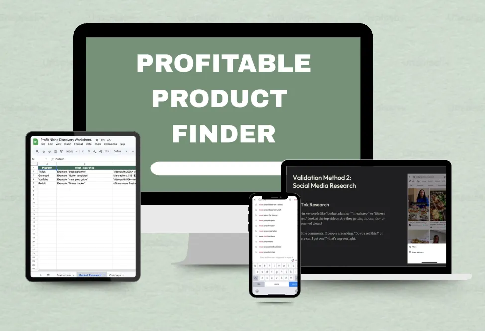 Use the Profit Discovery Sheet to map out your ideas and quickly discover simple ways to spot high-demand, winning products.