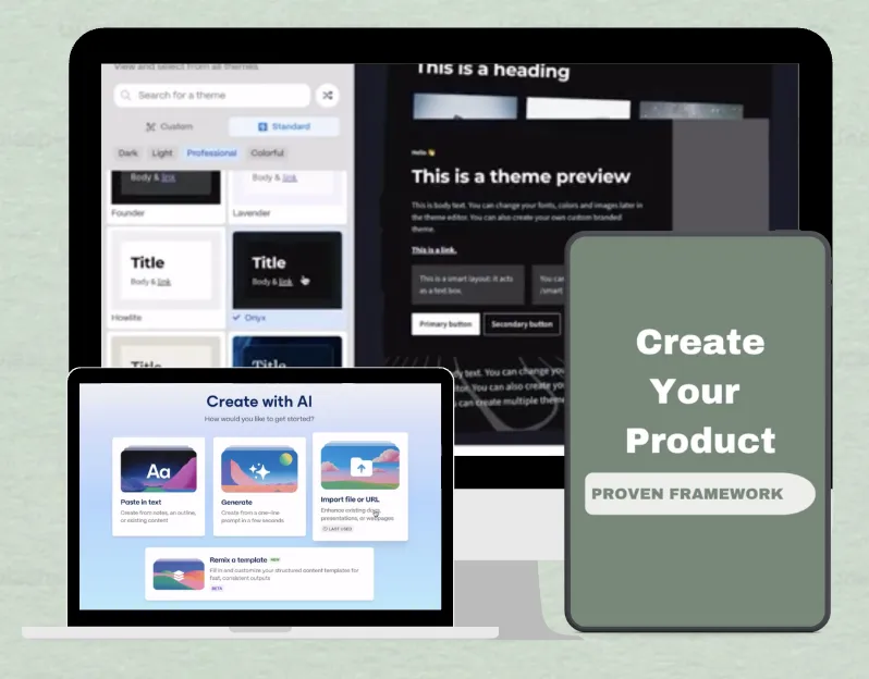 Using my AI prompts, you’ll create the content AND design your product in minutes. Most people spend hours designing it in Canva. You skip all of that, so you can go from idea to a polished finished product, fast.